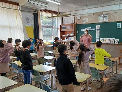 今日は、ALTが来校され、2年生と学習をしました。身体の部分(頭や目、鼻、口など)を使ってゲームをしていました。とても楽しそうでした。3年生からは、外国語活動で週1回英語の学習が始まります。もう随分、英語に慣れ親しんでいるようです。