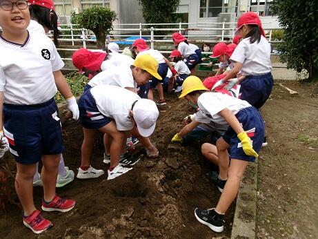 10月11日(水)には、2年生が芋掘りを行いました。5月25日(木)の芋の苗植えから約5ヶ月がたちました。