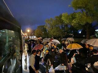 到着が雨のため遅れ、ご迷惑をおかけしました。