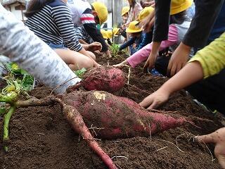大きく育ったイモを一生懸命、掘り起こしていました。