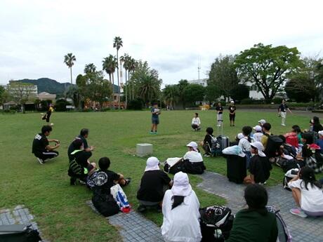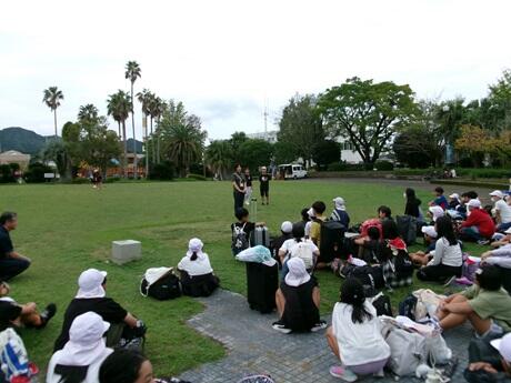 学年主任からは、「君たちはもっている」という話でした。雨天100%の予報ながら、屋外の活動が実施できました。