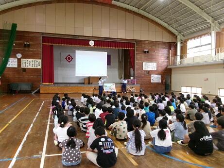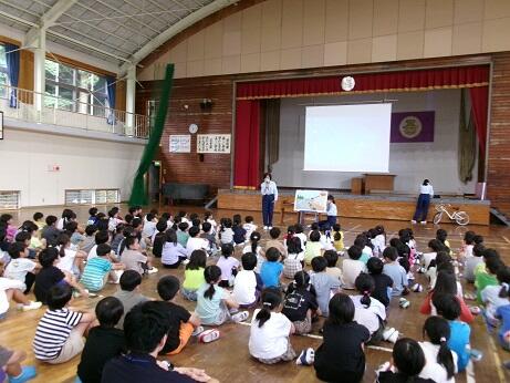 10月4日(金)には、日南警察署や交通安全協会の方々をお招きし、体育館で交通安全教室を行いました。