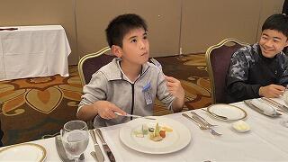 初めは緊張している様子でしたが、コースが進むにつれて徐々に緊張もほぐれ、上手にナイフとフォークを使うことができ、美味しく食事していました。