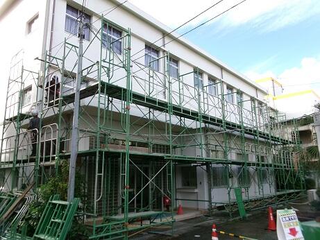 話は変わって、管理棟の外装工事やプールの床面の塗装工事がほぼ終わりかけていることをお知らせします。