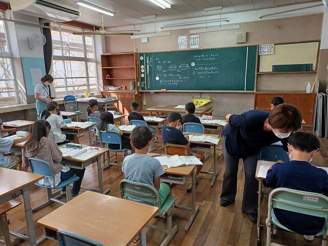 2学期から3・4年生の算数の時間も5・6年生と同じように少人数指導が始まりました。1クラスを習熟度別に2つに分けて、きめ細かな指導を行っていきます。今日は、3年生の算数の時間をのぞいてみました。学習支援員も一緒に指導するので、より個に応じた指導ができるようになりました。分からないところは、どんどん質問して、分かるまでがんばりましょう。また、今日の昼休みは熱中症指数が低かったので、子ども達は運動場で元気よく遊んでいました。少しずつ秋が近づいていますね。