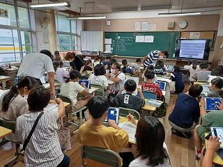 今日は、5・6年生の参観日でした。さすが高学年、どちらの学年の参観授業もタブレットを有効に活用した学習活動をしていました。保護者の皆さんも一緒に操作したり、考えたりする場面もあり、とても和気藹々な雰囲気の参観授業でした。子ども達は、集中して学習に取り組んでいました。また、学級懇談でも保護者の皆さんにタブレットの有用性を体感する場を設定するなど、新しい学習ツールとしてのタブレットを知っていただけたのではないでしょうか。今度とも、子ども達の健やかな成長を学校と家庭とが連携して、できることを最大限にいきたいと考えます。