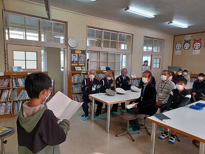 今日は、最後の全校朝会でした。これまでにお世話になってきた方々をお招きして、子ども達から感謝の気持ちを伝えました。交通指導をしてくださる杉本正幸さん、杉富正さん、福田康信さん、水槽の魚のお世話をしてくださっている坂本哲夫さん、生活科や総合的な学習の時間の様々な活動で支援してくださっている、伊豆元直男さん、坂元三規さん、坂元恵美子さん、安樂明さんに、6年生から感謝状を贈りました。最後に、6年生の代表児童が、お礼のことばを述べました。全校児童みんなで、感謝の気持ちを表すことをできて、ボランティアの方々も素敵な笑顔になられていました。