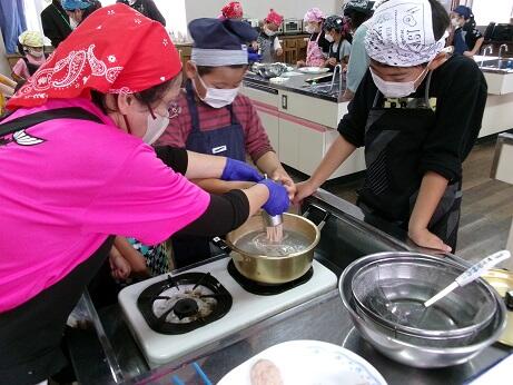 「おいしくなあれ、おしくなあれ」とかけ声をかけながら調理をしていました。