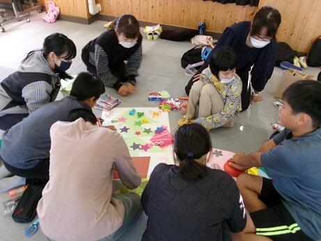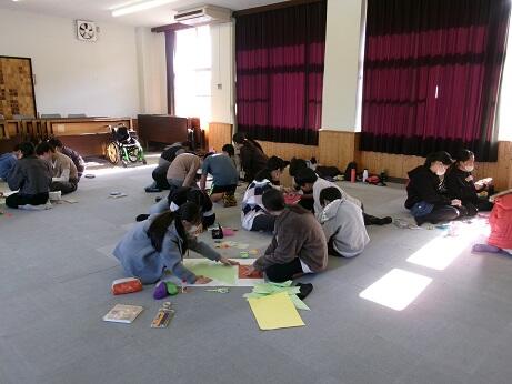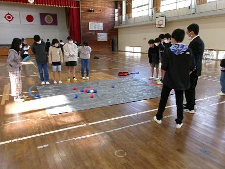 体育館では、ボッチャに取り組んでいました。多目的室では、クリスマスツリーの装飾に取り組んでいました。
