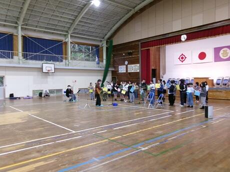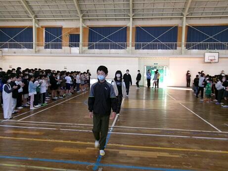 始めに、1~4年生からの感謝の言葉とお別れの歌の発表がありました。次に、卒業生から卒業式で歌う歌の発表が行われました。最後に、卒業生が1~4年生の間を通って、拍手で見送りました。