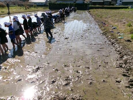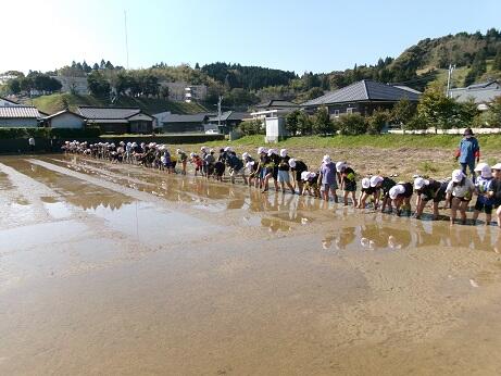 3月21日(木)には、JAはまゆうや地域ボランティアのご協力のもと、4年生が田植えを行いました。
