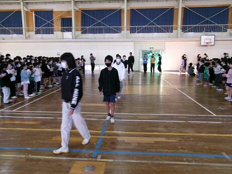 3月22日(金)の朝の活動で、卒業生と1~4年生とのお別れ集会が行われました。