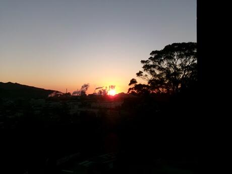 穏やかに初日の出を望むことができました。快晴の青空の中に、桜坂や校舎3階から望む初日の出の様子です。