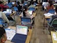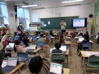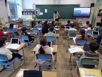 12月16日(火)に、1年生がプログラミング学習に挑戦しました。学校でお世話になっている業者の方に来校していただき、映像等を使いながら1年生にもプログラミングの基礎が分かるように丁寧に指導していただきました。最初はなかなか分からず戸惑っていた1年生でしたが、自分で入力した指示どおりにアイコンが動くことに「おお~~~!」といった具合に感動しながら、楽しく取り組むことができていました。これからの時代に役立つ学習となりました。