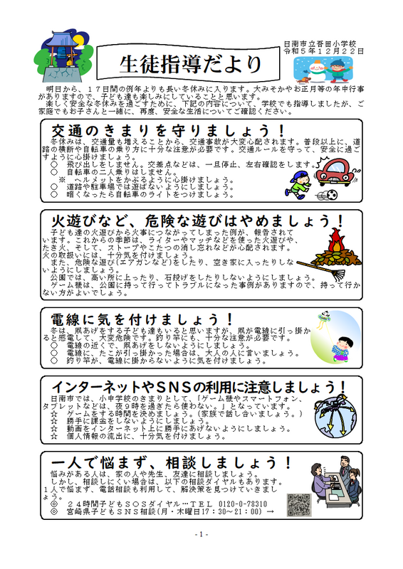 ○学校だよりを発行しました。(R5.1.12)