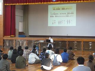 校長からは「命の大事さ」の振り返り、生徒指導担当からは「春休みの生活」として、①規則正しい生活を送る②ルールを守ることを話しました。しっかり守って、元気で楽しい春休みを過ごしてほしいと思います。