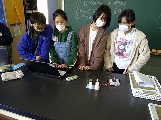 まずは、プログラミングとはどんなものかを体験しました。豆電球とつないで、明かりがつく時間や消える時間を設定しました。