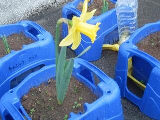 スイセンの花が終わり茎だけになったので、鉢や水受けをきれいにしました。2年生になったらトマトをすぐ植えます。そのためにきれいにして準備をしておかなくてはなりません。きれいに咲いていたスイセンを片付けるのはちょっと心が痛みますが、また次の学習に備えて・・・。