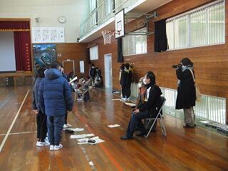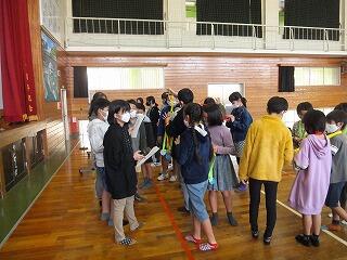 5年生が、2・3校時に体育館で「へぇ~ほぉ~まちあるき」のリハーサルを行いました。「へぇ~ほぉ~まちあるき」とは、油津地域協議会の方々の協力を得て、日南市内外の皆様を5年生が油津の町を案内して歩くものです。例年ですと、2月中旬の週末に実施しているのですが、今年度はコロナ禍のため動画を撮影し、油津地域協議会のホームページに掲載する予定になっています。