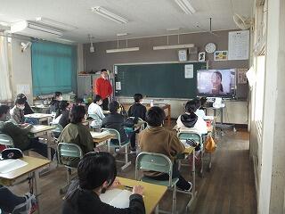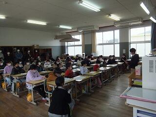 今年度最後の参観日を実施しました。各学年工夫を凝らして、劇や合奏、作文や作品発表、クイズ形式で1年間の学習を振り返っている学年もありました。2校時には、学級懇談会を行いました。6年生は、油津中学校の2人の先生に来ていただき、説明会をしていただきました。例年ですと、6年生と保護者の皆様が油津中学校に行って実施していますが、今年はコロナ禍のため先生方に来ていただきました。プレゼンを使って、わかりやすく説明していただき、子どもたちも保護者の皆様も真剣に聞き入っていました。また、中学生からの部活動紹介もあり、興味深そうに聞いていました。油津中学校の先生方、中学生のみなさん、ありがとうございました。