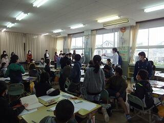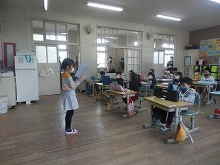 今日は、油津にとても詳しい地域のボランティア15名の皆様に来ていただき、グループごとに分かれて、5年生が考えた地域の案内を発表し、いろいろとアドバイスをしていただきました。本番は、3月上旬に予定しています。また、それまで練習を重ねて、より良い発表にしてくれることと思います。ボランティアの皆様、ありがとうございました。