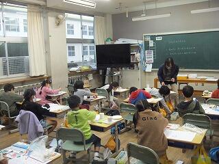 今日は、久しぶりに一年生で英語の授業がありました。一年生は、教科で英語がないので、生活科や国語の中での授業になります。