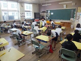 3年生が、初めてそろばんの学習に取り組んでいました。そろばんは、主に3・4年生で学習します。日常生活では、なかなか使う機会が少なくなりましたが、そろばんは計算力だけでなく、生活面においても、集中力を養ったり、情報を処理する力を高めたりする効果が期待できます。3年生のみなさん、そろばんをどんどん使えるようにしっかり学習してください。