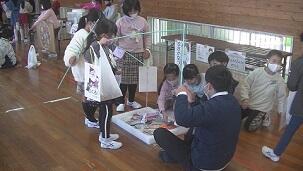 今日は2年生が1年生を招いて、おもちゃ祭りをしました。2年生の手作りおもちゃで1年生は大喜び。