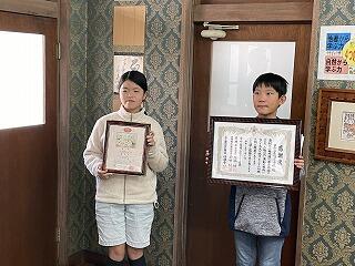 日南市人権ポスターコンクール 入選 5年土田睦乃さん 善行児童賞 6年川端真矢さん
