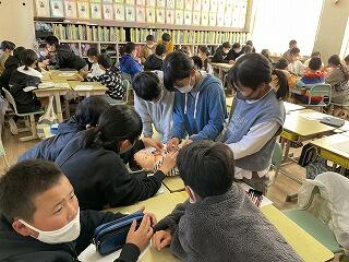 1月19日(水)に田中産科婦人科クリニックの田中先生が6年生に対して「生命のつながり」についてお話をして下さりました。子宮の中で赤ちゃんが育つ様子や出産直後の赤ちゃんのビデオを見ました。また、実際に赤ちゃん人形を抱っこしたり、妊婦体験をしたりしました。体験した児童は、「思ってたよりもお腹が重くて大変でした。」「赤ちゃんの首がグラグラしてました。」と感想を述べていました。これからもご先祖様から代々受け継いだ命を大切にして下さいね。