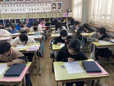 5年生が、図書室からの問題にチャレンジです。