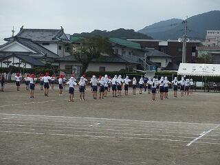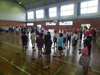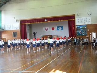 今日は、今年初めての全校体育がありました。コロナの関係で全校体育の回数も少なくなっています。久しぶりに全校がそろっての練習です。しかし、まだまだ暑いのでとても大変でした。開閉会式の練習をしました。