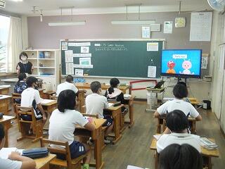 本年は、新型コロナウイルス感染症対策のため各教室で分散して開催することにしました。流れは、日南市歌斉唱、紙芝居(小村寿太郎、小倉処平、海幸山幸の中から1つ)、学年発表上映、感想、校歌斉唱で行います。