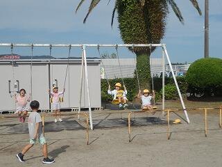 青年部の方から嵐の手洗いダンスを教えてもらいダンスをした後、プレゼントをもらいました。飫肥杉の積み木とスケッチブック、マスク、メッセ-ジカ-ドが入っていました。とても大喜びでした。ありがとうございました。