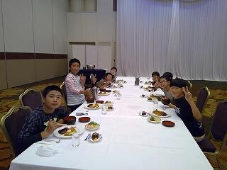 昨夜は、なかなか寝付けられない子、友達と話が積もり、寝不足の子もいましたが、朝食会場に集合しました。