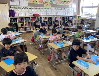 2年生が、生活科「まちたんけん」で、油津郵便局に行きました。