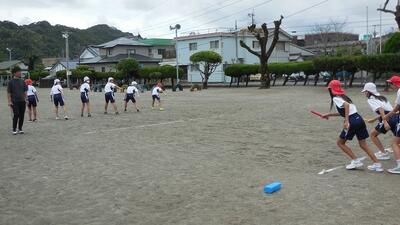 4年生が、体育で「ハンドベースボール」に取り組んでいます。