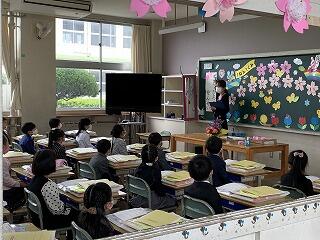 入学式で1年生に、がんばってほしいこと『あいうえお』を伝えました。「あ」は『あいさつ』、「い」は『いのち』、「う」は『うんどう』、「え」は『えがお』、「お」は『おもいやり』です。学校に早く慣れるように、1年生には頑張ってほしいです。保護者や地域の皆様、子どもたちが健全に元気に成長しますように、今後ともお力添えをよろしくお願いいたします。