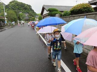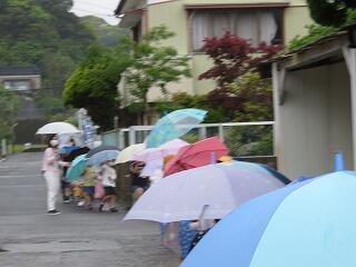 4月28日水曜日 1年生は遠足で木山公園に行きました。あいにくの雨でしたが、公園までは、傘をさしていきました。遊具もあり、広くて晴れていたら十分遊べそうでした。晴れた日に、親子できてみるといいと思います。その後、学校に帰って校内遠足になりました。みんなでお弁当を食べて楽しかったです。