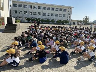 5月7日 金曜日 津波の避難訓練がありました。油津小は津波が来たと想定して避難場所は日南病院になっています。実際に歩いて避難をしました。訓練でしたが、どの子どもたちも一生懸命避難していました。このように避難することはない方がいいのですが、もし避難する場合は、冷静に行動したいです。