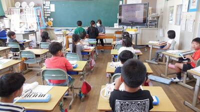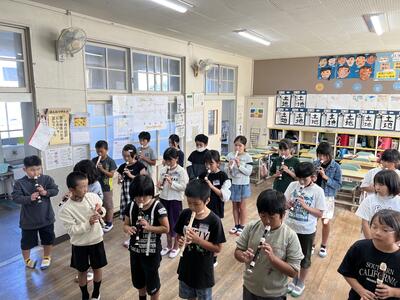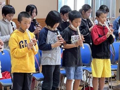 4年生が、養護老人ホーム和幸園訪問で披露する、歌とアルトリコーダーを練習しています。