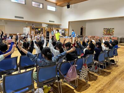歌やアルトリコーダーの演奏を披露し、一緒に体操もできました。