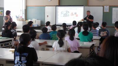 学校保健委員会では、「うどん茶房ふなや」の店主であり、「ひろがれ弁当の日㏌宮崎実行委員会」代表の船ケ山清史氏を講師に招き、講演をしていただきました。