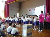 生徒指導の矢野先生からも2つ話がありました。1つ目は、「梅雨になるので傘を気をつけてさし、交通ル-ルを守ること。」2つ目は、「水の事故に気をつけること。」というお話がありました。みんなしっかりと聞くことができました。