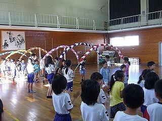 本校では、毎年5月に体力テストを行っています。1年生から6年生までで7つの縦割りの班をつくり、班ごとに移動して各種目に挑戦します。上級生が下級生に優しく教える姿、下級生が上級生に尋ねる姿、一生懸命に挑戦する姿などが見られます。たいへん暑い日でしたが、子どもたちはよくがんばりました。