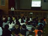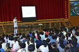 次に、体育館へ移動し、自衛隊の方による防災教室を行いました。お話を聞いたり、DVDを見たりしながら、津波が発生した時にどのように行動すればよいか学ぶことができました。自衛隊の皆様、ありがとうございました。