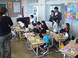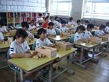 1年生では、日南キューブを活用しながら算数の学習をしていました。保護者の方も子どもの側で一緒に活動してくださいました。楽しい算数の授業でした。