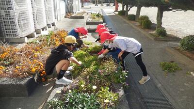 4年生が、理科学習で使用している畑と学級園を整備しました。