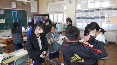 5年生が、理科で「食塩のとけ方と温度」を学習しています。