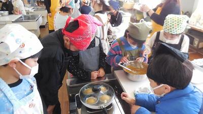 3年生は、育てたサトウキビを収穫して、さとねり(風田地区製糖組合)を見学に行きました。代表の平島 二三夫さんは、風田地区に江戸時代から伝わる伝統製糖『さとねり』の唯一の継承者。伝統製法でさとうきびの栽培から黒糖の製造、販売を行っているそうです。UMKテレビ宮崎の取材もありました。